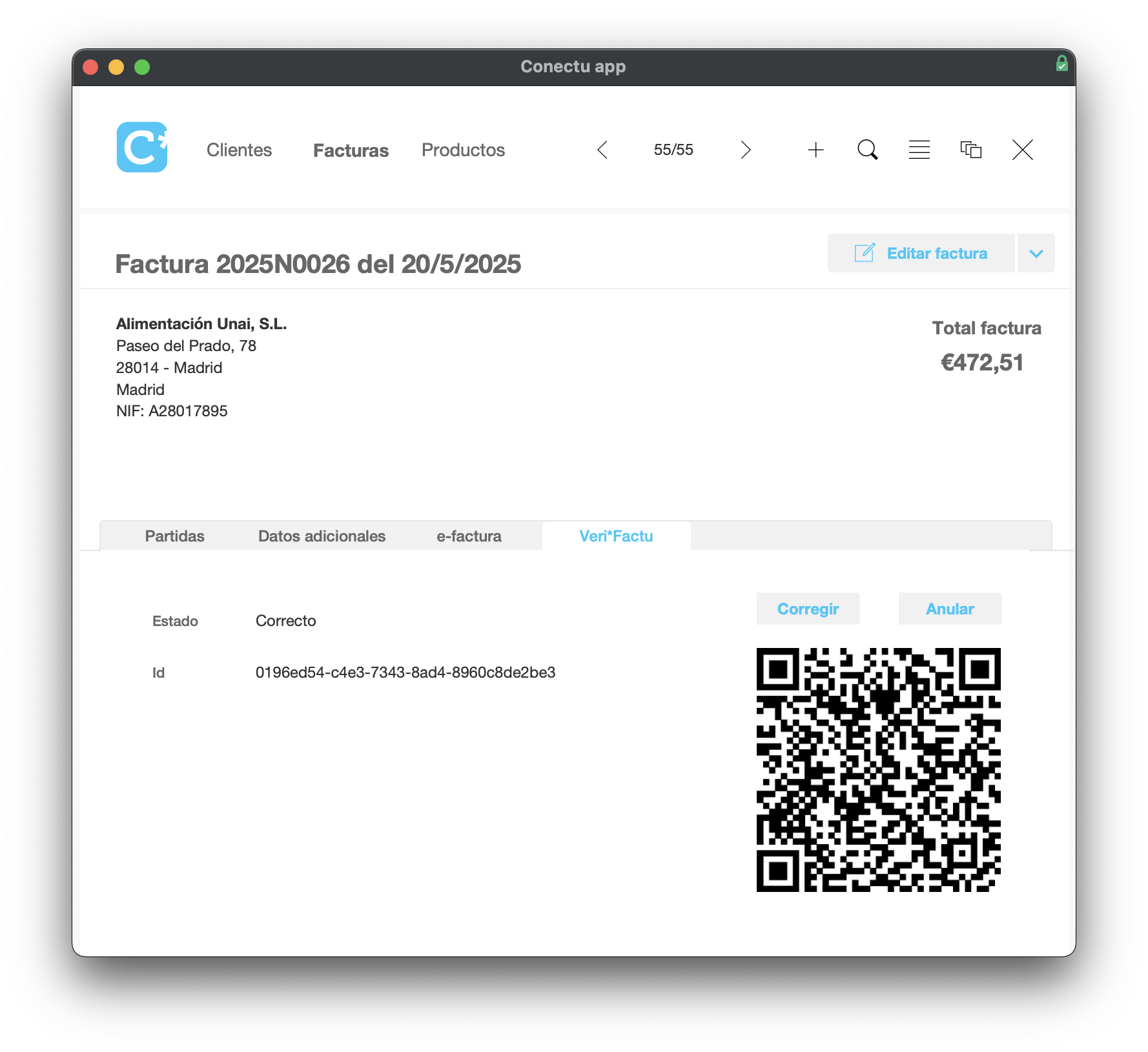 Verificable: El cliente escanea el QR y comprueba que su factura ha sido registrada correctamente.